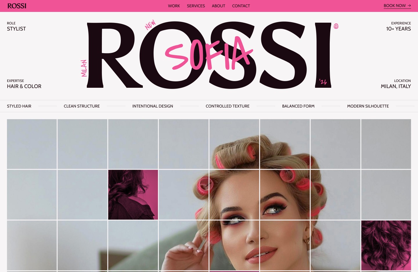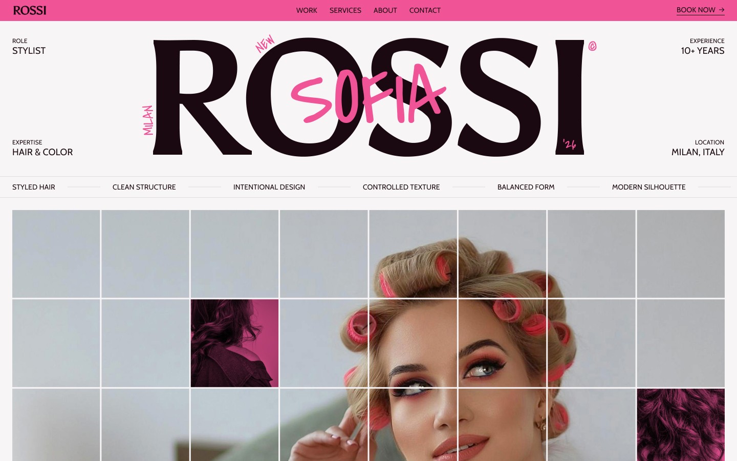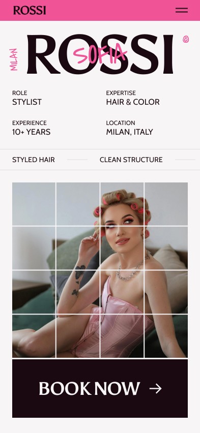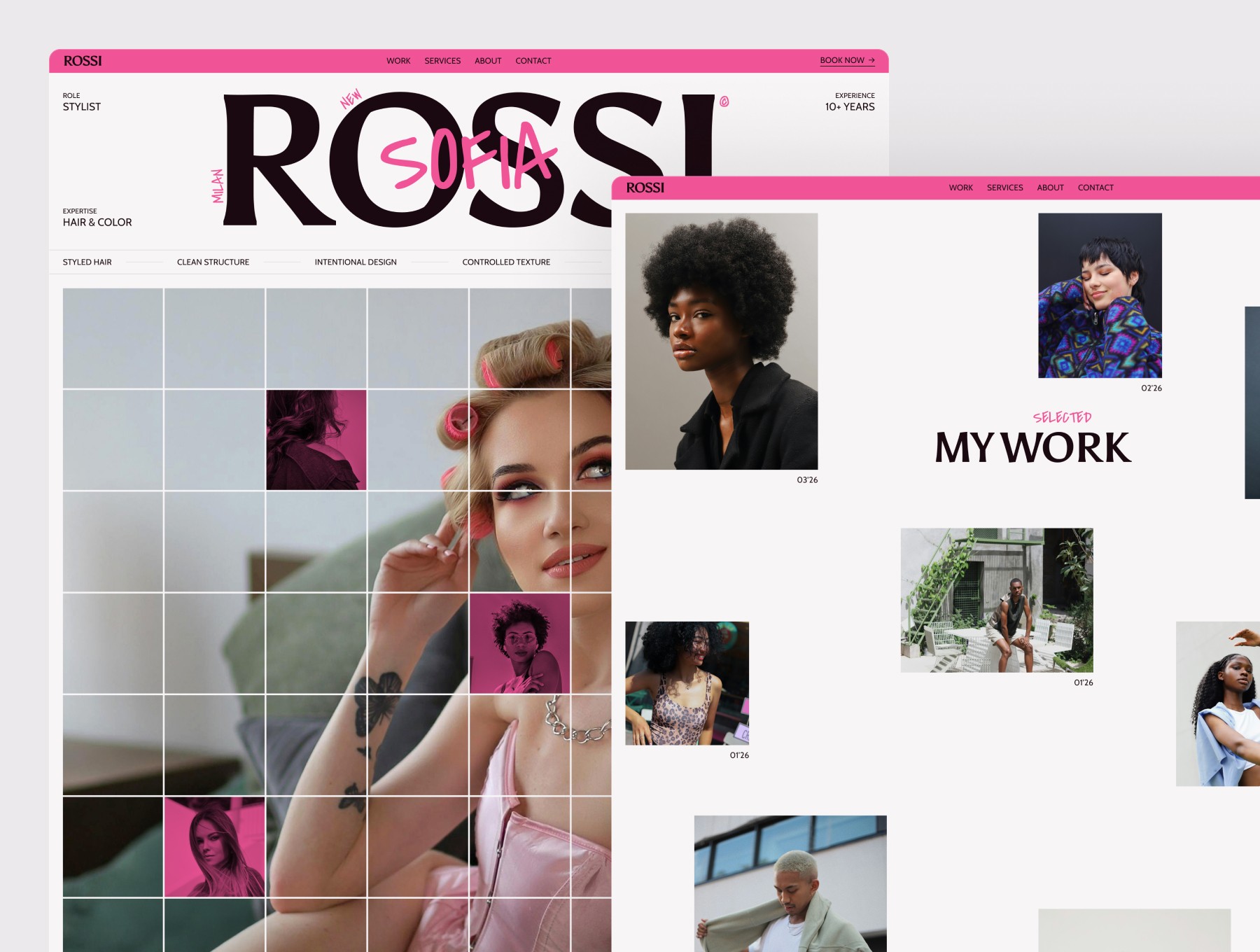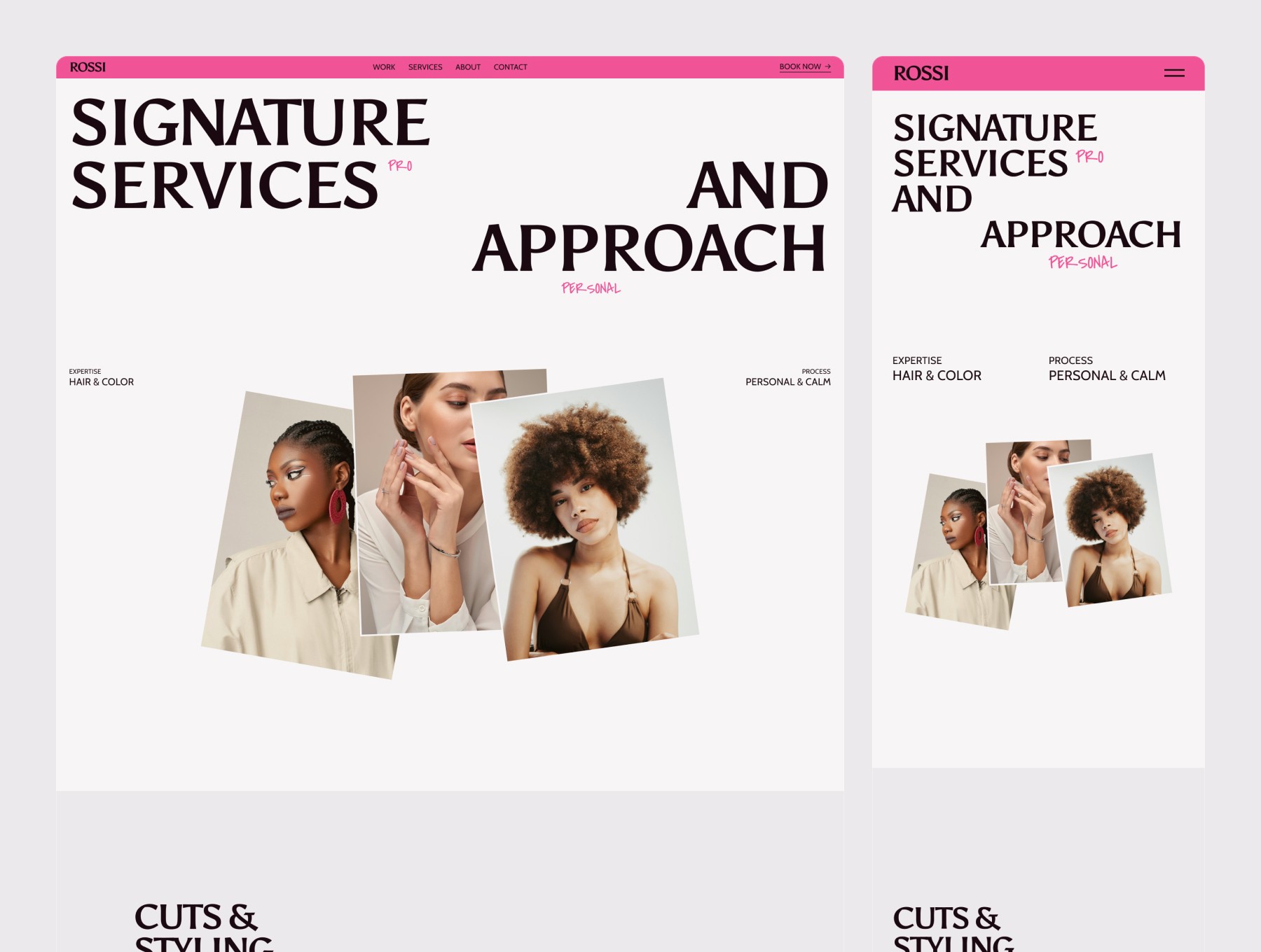 Rossi, a personal hairstylist brand, needed a website that could reflect both artistic identity and professional credibility while keeping the experience clean and easy to navigate. The main challenge was to visually showcase hairstyling work in a way that feels premium and personal, without cluttering the interface. At the same time, the site had to guide users toward key actions like booking or exploring services, while remaining responsive and consistent.
