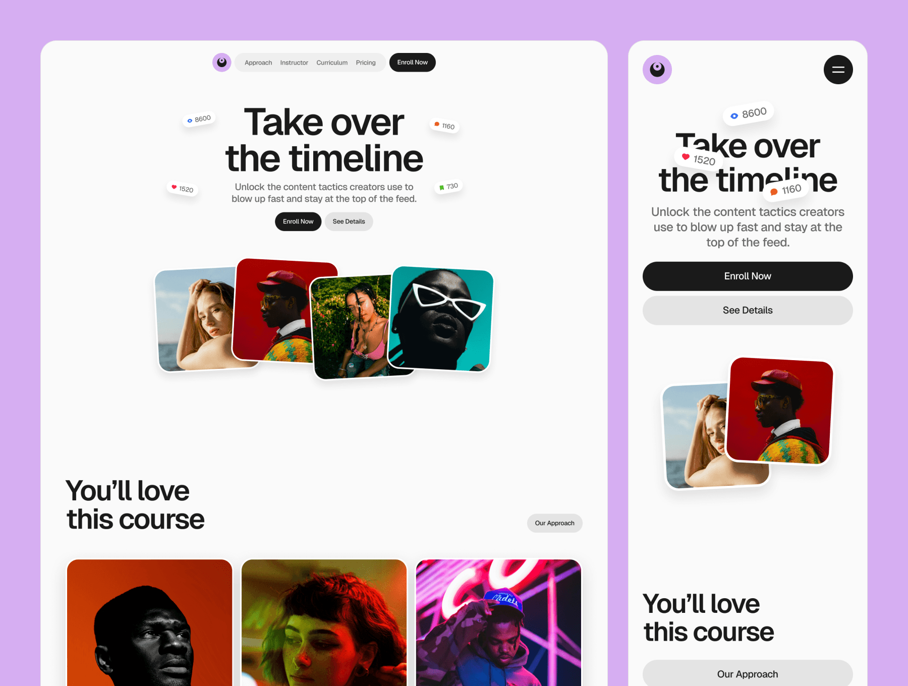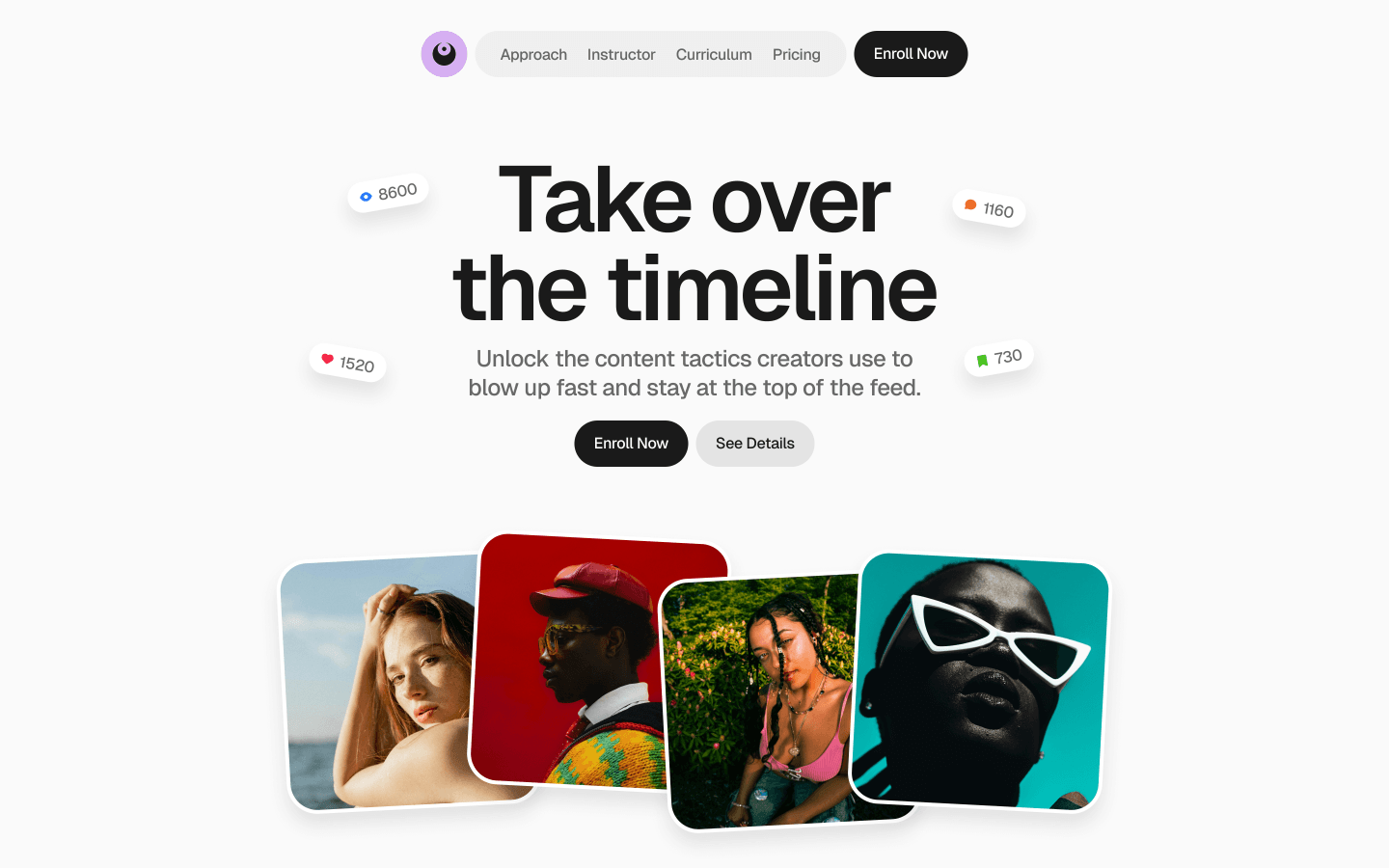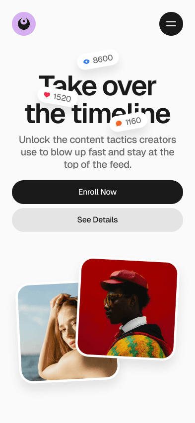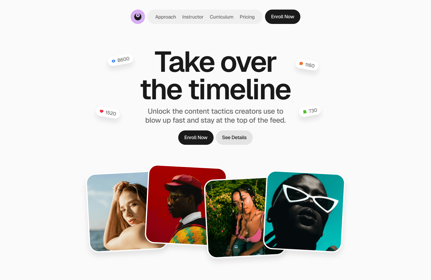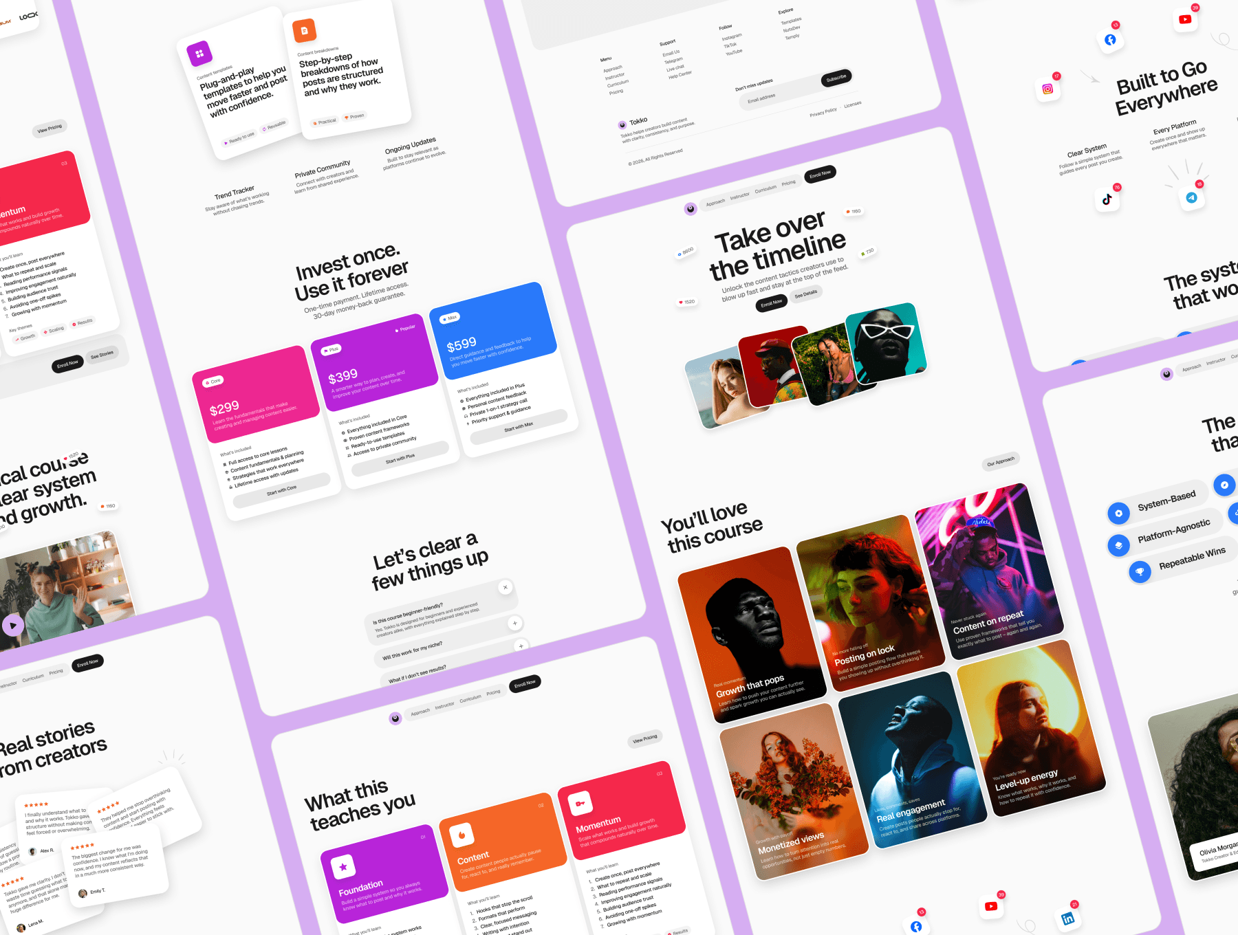 The challenge was to design an online course that stands out in an oversaturated creator-education market while solving real user pain points. Most existing course websites overwhelm users with long-form content, vague promises, and poor structure, making it difficult for creators to trust the product or understand its value quickly. The goal was to communicate clarity, credibility, and practicality from the first interaction, while keeping users engaged and motivated to explore the course.
